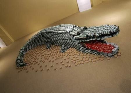 Project of artist Robert Bradford; he uses recycled material, mostly of plastic coloured object, for doing amazing sculptures of animals and specially dogs. Againg it is something build with pieces that are used but at the same time new.
